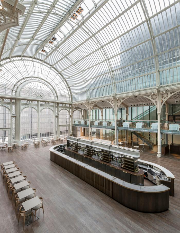 After a fire destroyed the roof in 1956, it lay nearly derelict until the 1997-9 redevelopment of the Royal Opera House. It is now a much used public area, a restaurant and champagne bar for patrons during performance intervals, the setting for Tea at the Royal Opera House during the day as well as a performance space. The hall was renamed in 2007 in recognition of generous financial support from the Paul Hamlyn Foundation.*