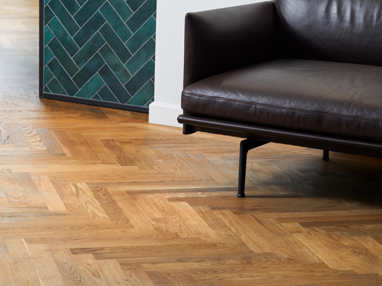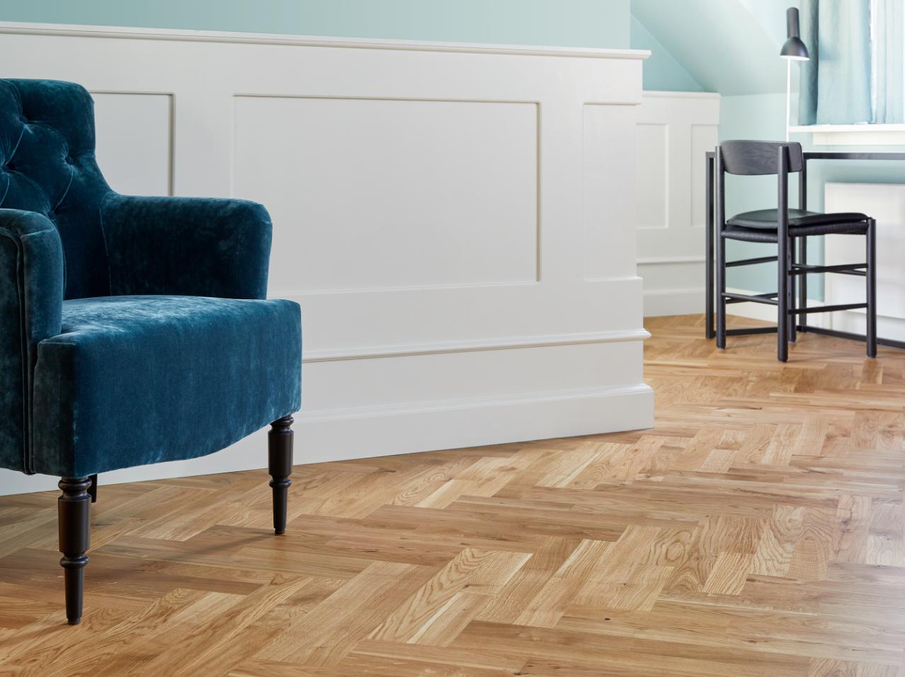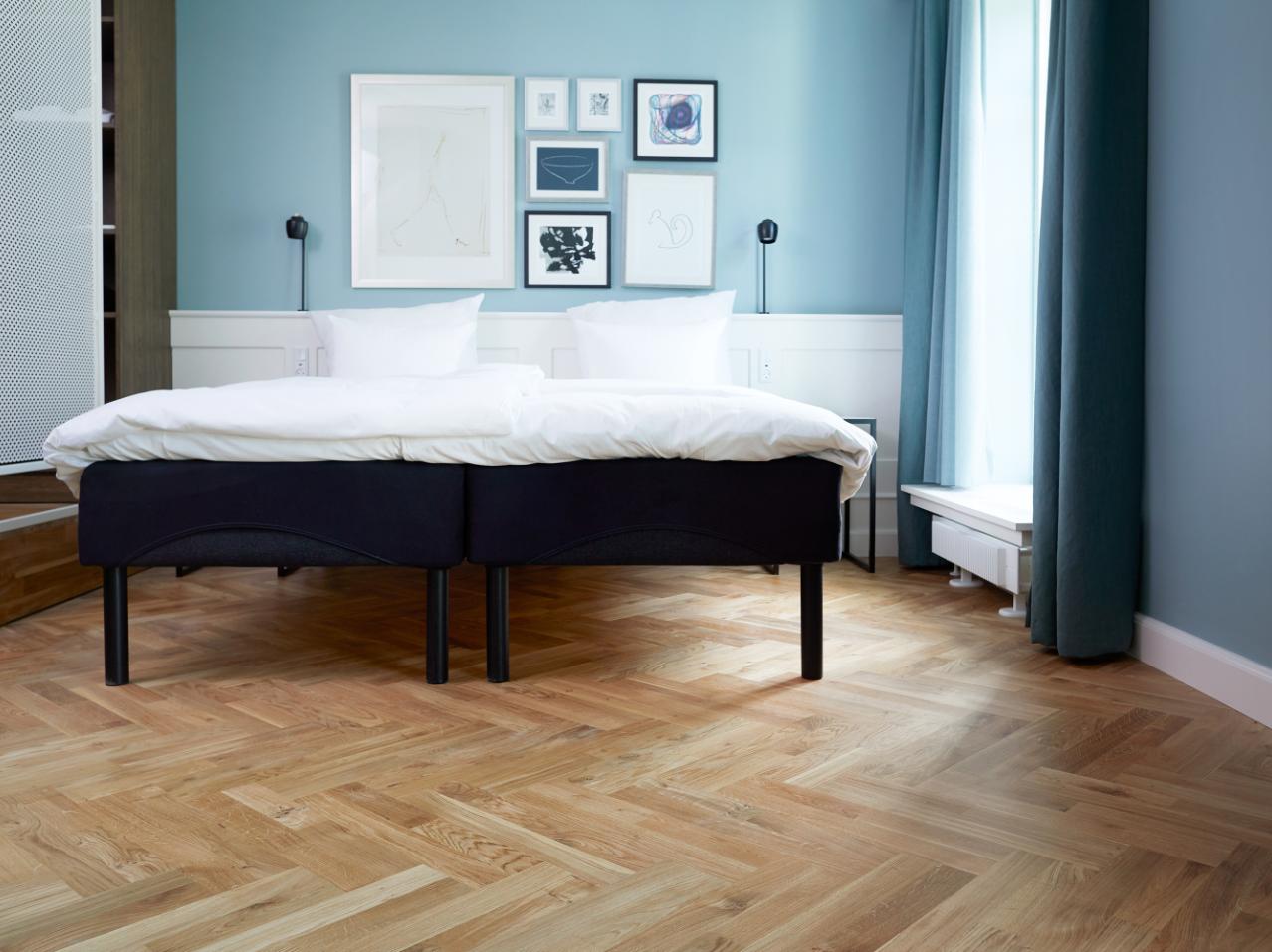 The 64 new hotel rooms were inspired by the classical style of a city centre Copenhagen apartment, all fitted with our new Twin Herringbone flooring in solid oak. Pre-finished with a hard wearing ultra matt lacquer, Twin Herringbone is ready to walk on as soon as it is installed without the need for sanding or on-site finishing treatments. The quick and straight forward installation process saved the Hotel both time and money – installing a Twin Herringbone floor costs less than half of the installation cost of an unfinished parquet floor.