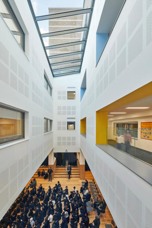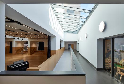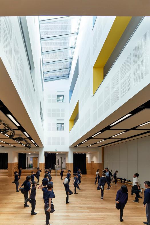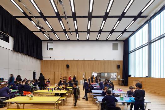 The brief to create a primary school much larger than the original Victorian building on the existing site challenged Dixon Jones to design a school where teaching accommodation is arranged vertically around a series of cascading roof terraces. With nursery and reception classes on the ground, children progress upwards through the building the older they get, with the junior years arranged on the upper floors.