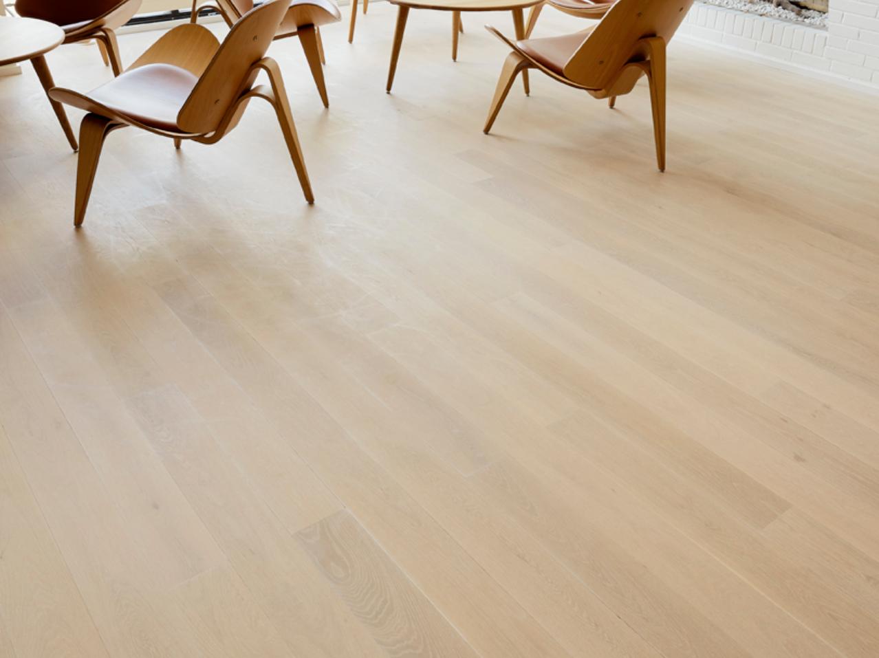 A light-coloured floor helps enhance lighting levels, reducing the need for artificial light and therefore saves energy. In contrast to a dark surface, which absorbs and holds heat and subsequently releases it back into the room, a pale floor will not contribute to overheating, reducing the need for air conditioning systems. With a perfectly smooth surface, a solid wood floor from Junckers cannot harbour dust or mites. As an all-natural material, wood contributes to an even and balanced indoor climate as it helps maintain temperature in a room and reduces static from any electrical equipment. All Junckers’ floors hold the Danish Indoor Climate label and have undergone extensive degassing and odour testing to ensure there are no chemical substances in the flooring.