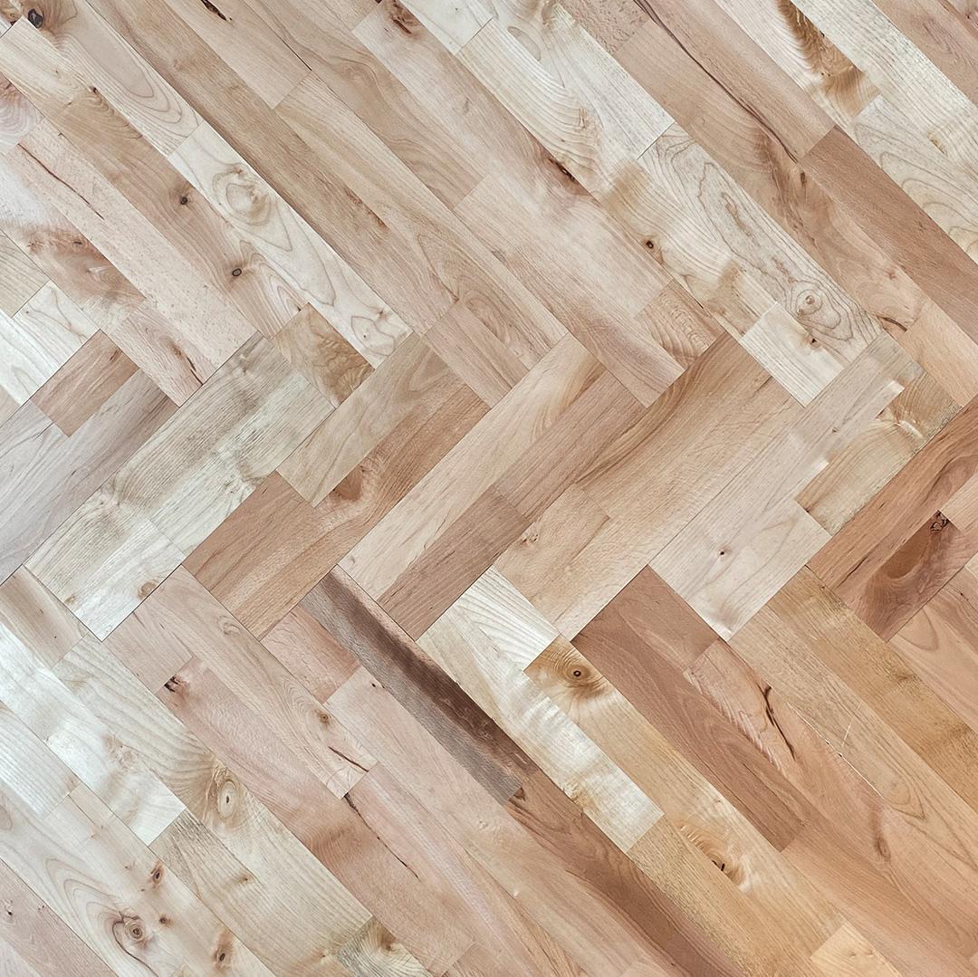 Funderø Parquet Flooring gives the traditional parquet floor a modern and environmentally friendly update, without compromising on JUNCKERS' high quality. Funderø is designed with offcuts, originating from JUNCKERS' flooring production. Since JUNCKERS offers a wide range of wood species and finishes, the upcycled products are designed with mixes of these. With variations in both material and finish, each floor has a unique and visually interesting look, without taking up too much attention in the space. We believe that what sets Funderø apart is our work with mixing wood species, giving our parquet flooring a unique look and feel.