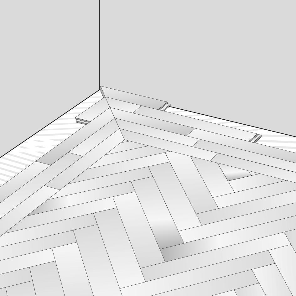 If the floor is to be finished with a border at the walls, the floor is cut at the required distance from the wall corresponding to the desired width of the edging, eg 5 x the stave width + distance to the wall.