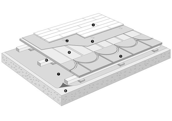 - Clip floors on subfloor with cast-in heating pipes