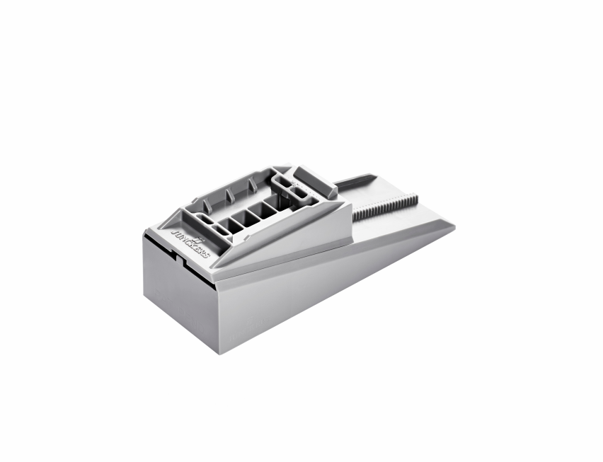 Adjustable wedge to be clicked onto shock pads prefixed on the batten. The J-Lock wedge allows for the quick correction of uneven subfloors into flat, ideal playing surfaces. Levelling the floor is conducted without use of nails and tools.