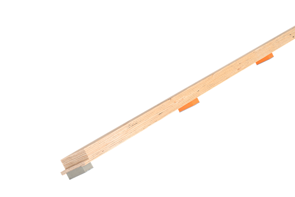 The lower Duobat 120+ batten rests in this adjustable and locking DuoWedge cradle, making it easy to correct even the most complicated subfloors into flat, ideal playing surfaces. Levelling the floor is carried out without use of nails and tools.